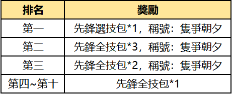 * 該活動均不清除歷史排行榜數據,當佔據對應名額後活動即截止