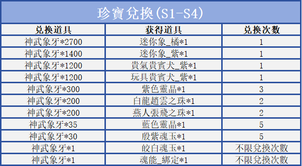 神武象牙,好禮兌換!活動期間,活動期間,三國商城購買【天象神犬禮盒】可獲得道具【神武象牙】,使用【神武象牙】可前往【珍寶商店】頁面兌換: